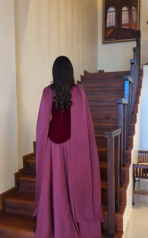 • طويلة بامتداد إلى الأرض مع شال جانبي يضيف لمسة دراماتيكية.