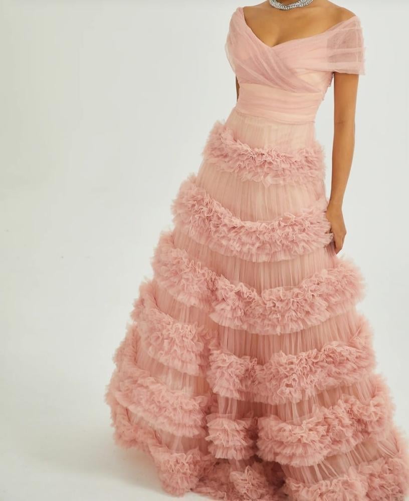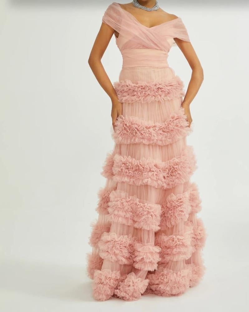 فستان وردي طوي تل ناعم