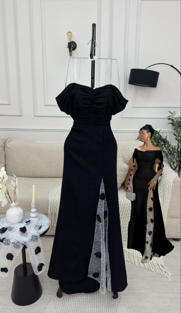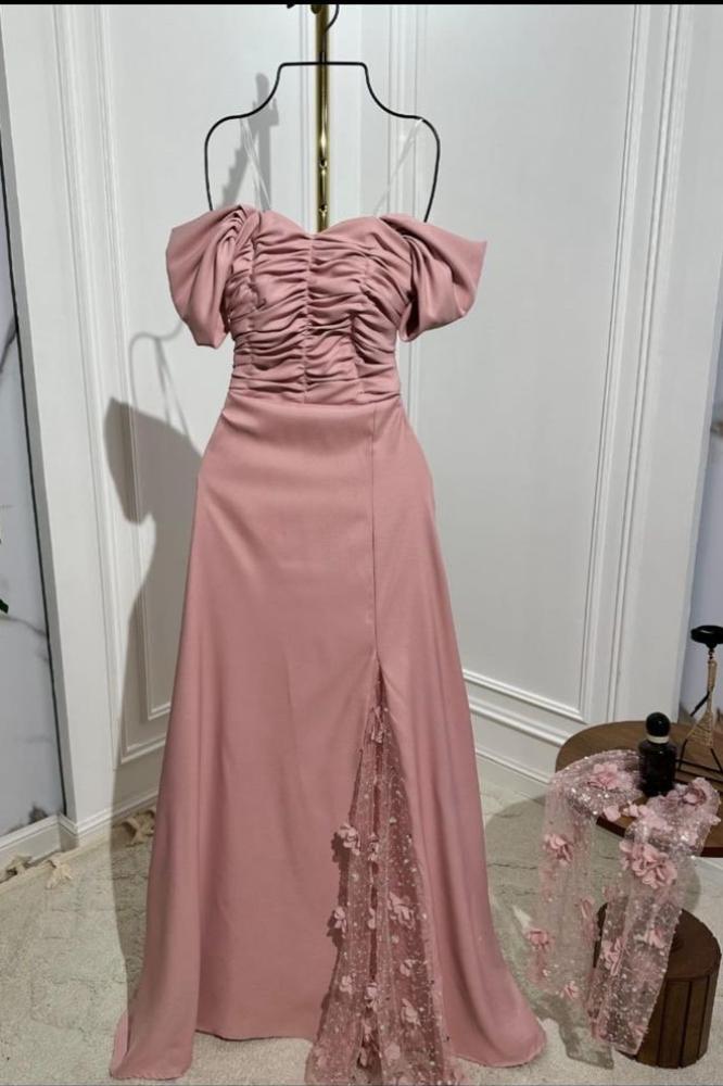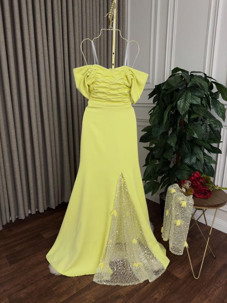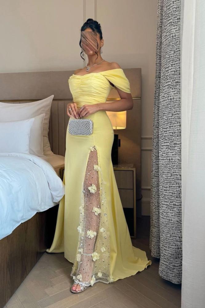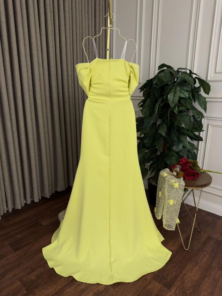 فستان اصفر أنيق بفتحه ساق